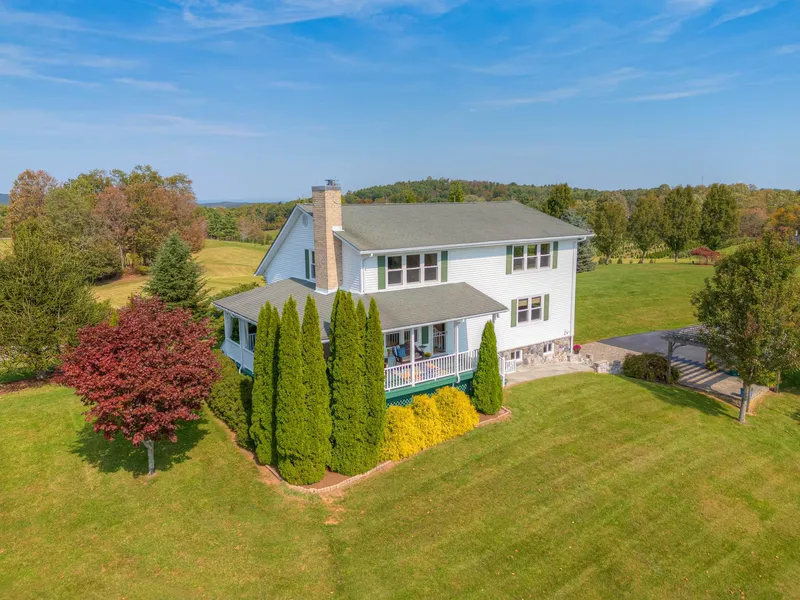 Magnificent 4BR, 3BA home on 46+ manicured, picturesque acres, 1-car garage, wrap-around porch w/stunning long range views of Buffalo Mtn w/ multiple barns, tree farm, nursery & hay fields. LR w/cozy wood-burning FP w/gas logs. Chefs dream kitchen updated in 2022 by Ideal Cabinets, equipped w/Wolf gas range, custom cabinets/countertops with tiled backsplash. Adjoining walk-in pantry, w/cabinets offers storage space for culinary essentials. Main level primary BR & walk-in shower, multiple shower heads & custom vanity. Upper-level BRs have spacious sitting areas w/walls of windows for long range views. Generac whole-house generator, wood-burning stove in bsmt & zoned HVAC. Garden area w/pergola, garden cottage w/heat & 5 acres of invisible fencing & dog kennel. Very well built 2800 SF equipment barn w/electricity, water/heat includes office area w/ loft, full bath & washing machine. Hay ba...
