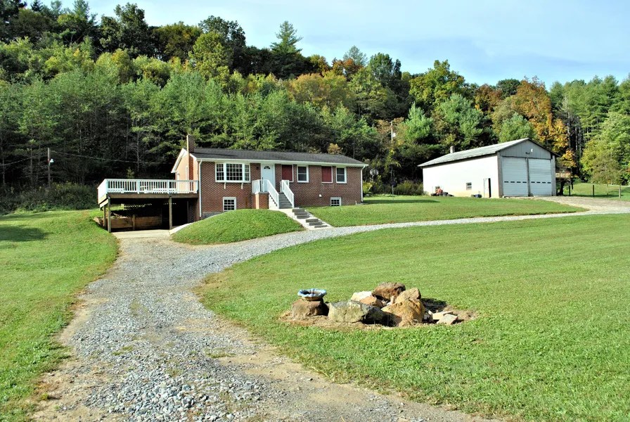 Beautiful three bedroom brick ranch on two parcels with 5.88 acres just minutes to Downtown Floyd with room to expand in the full unfinished, walk-out basement with new Heat Pump! The living room is open to kitchen and has a bay window to enjoy the view. Entertain on the very large side deck which has space below to park your car out of the weather. There is a washer/dryer hookup in the bathroom as well as the basement. The detached oversized garage has plenty of room for vehicles, large farm equipment, and space for a workshop. Move-in ready! Call for a private