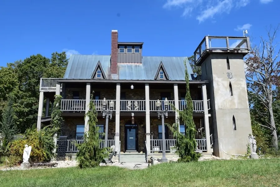 From the moment you arrive, this 3 story castle-inspired home makes a statement with its stone exterior, metal roof, and a unique four-level tower. At the top of the tower, you'll discover an open-air observatory deck offering stunning 360-degree views of the mountains. Inside the main home, it features a total of 3,324 sq ft of finished living area with 3 bedrooms and 4 baths spread throughout. Home was built in 1991. The main level features exposed beam ceilings and stained glass windows. The double-sided gas log fireplace provides warmth to the expansive kitchen and great room. The second level features 2 bedrooms and 1 full bath. The third level is a loft/bedroom area with a full bath as well as access to 2 balconies and access to a 6x6 loft/observatory. The basement is unfinished with an exterior access point. This home also features an underground tunnel that connects the basement ...