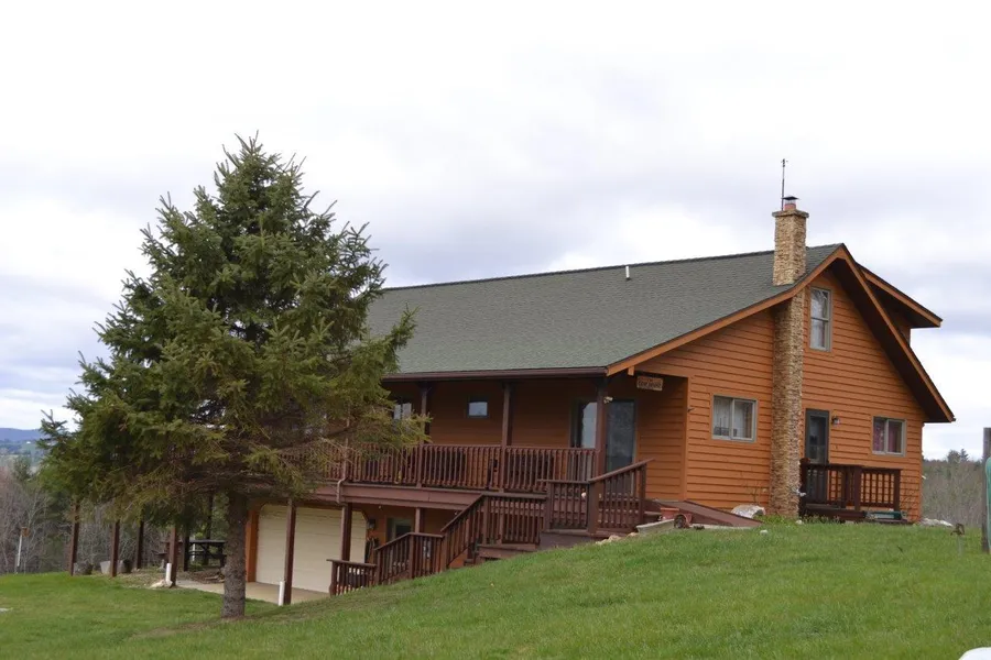 Beautiful 1 1/2 story with a contemporary Great Room. Very nice view. Additional kitchen and living quarters in the basement. Large portion of basement is garage/workshop. Groove interior and ceilings. Good mix of pasture and woods (mature timber). Long frontage on Big Indian Creek. Long road frontage. Large barn and shed. Taxes estimated by agent.