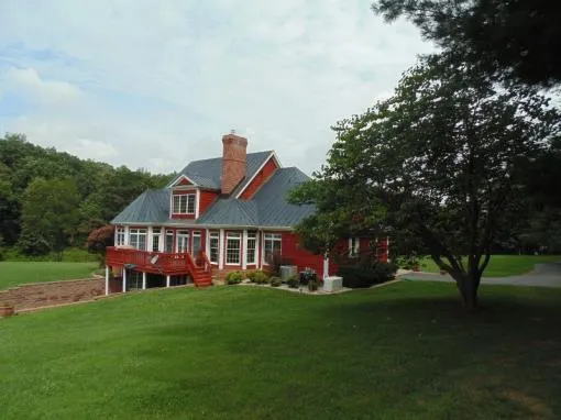 The land surrounding the home is bounded by Little River to the West, Mature Woods to the South and East, and Christiansburg Pike to the North. The home has a long paved driveway meandering from the entrance by the river with scenic landscaping and mature trees. When entering the property the home is barely seen in the background. Several hundred feet into the property opens up with an open field surrounding the home. There is a large covered front porch looking out across the yard to the river and a rear deck looking out towards the river. 45038-00107