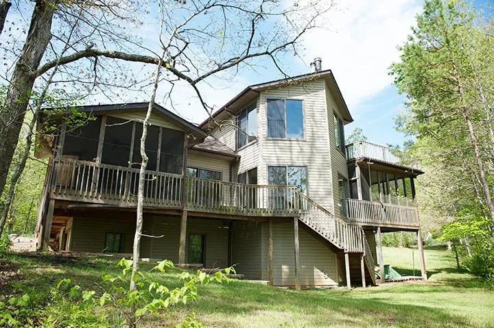 Secluded compound of two homes in a very private setting in the middle of 41 wooded acres just minutes from Scottsville and the James River. Large windows and multiple decks/porches bring the outdoors in and enhance the sense of peace and tranquility. A huge workshop/garage also has a separate 1540 square foot finished apartment, with 2 bedrooms, deck, and screened porch. Plenty of storage in both buildings. The land is all wooded with 2 creeks running through it. This property is extremely private, yet still an easy 20 mile drive to Charlottesville.