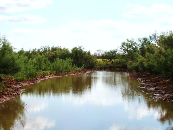 The property has a large earth tank that would be great to stock with catfish. The tank is fed by Mule Creek, which is a seasonal creek that runs through the middle of the property.