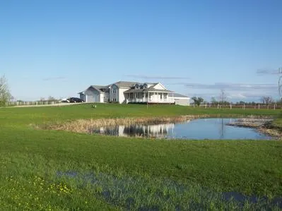 A horse and pony show can be yours as the owner of this 19+ acre ranch complete with an 8 stall barn, indoor area with viewing room, 3 pastures and a newer 4 bedroom, 3 bath home that looks to be right out of House Beautiful! Tall ceilings and a multitude of windows creates a cheery place to live. Cherry cabinetry and floors, granite countertops, a spacious food prep island and dry bar make entertaining easy. The gas fireplace in the living room is framed by doors leading to the wraparound deck and gazebo with southern and western views. The family room is a great place to relax or step out onto the patio. Dust off the in the full bath off the 4th bedroom. Clean your denims, hang your chaps or polish your boots in the large laundry room. The hay field is adjacent to the 5000 acre Eldorado Marsh. You'll enjoy watching the ducks swim in the pond, the turkeys strut their stuff and the deer ...
