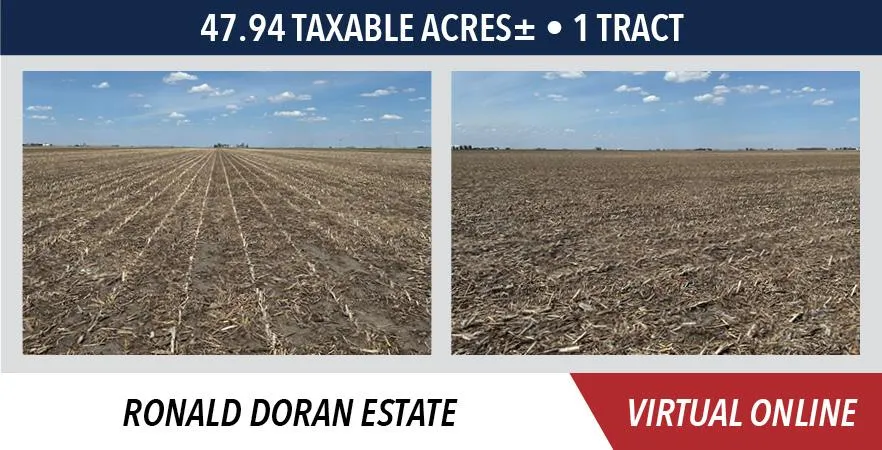 The Doran Estate farm sells with an open lease for the 2025 crop year and has farming availability immediately after the auction!