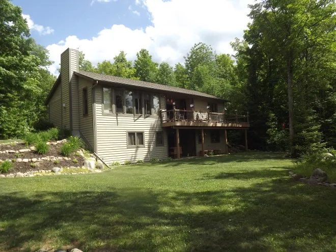 A RARE GEM! Situated on over 2 acres with 105 ft of frontage on no wake Camp 6 Lake, you will enjoy the privacy that comes with this immaculate 2 bedroom year round home. Relish the gorgeous lake views from your covered balcony/deck while enjoying your morning coffee or relaxing after a long day. This home was built with entertaining in mind and features an open concept design that allows for guests to be able to mix and mingle, all the while having the beautiful water views. The walkout basement is mostly finished and features a family room with a stone fireplace, full bathroom, and large sleeping area for extra guests. Whether you're looking to entertain friends and family, fish, hunt, ride the trails, or just have some peace and quiet, you'll have it all here! A paddle boat and row boat are included and furnishings are negotiable. This home is a must see! Call today for a private show...