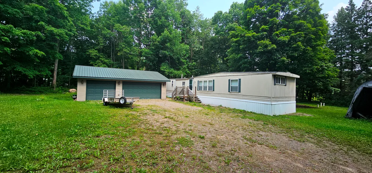 Carter property with well over an half acre, a 2 car garage with heated and insulated stall, conventional septic and drilled well. The fully wooded lot is secluded from the highway and has frontage on an undeveloped town road. The town plows this road too which is a huge savings. There is a 2 bedroom old mobile home that up until 2 years ago was lived in year around. There is no value on this mobile but could be used with some clean up. Or just have it hauled away and build new , Another option is bring in another mobile home or camp in your RV. The possibilities are endless. Just a short drive to the Lakewood/Townsend area for plenty of recreational activities.