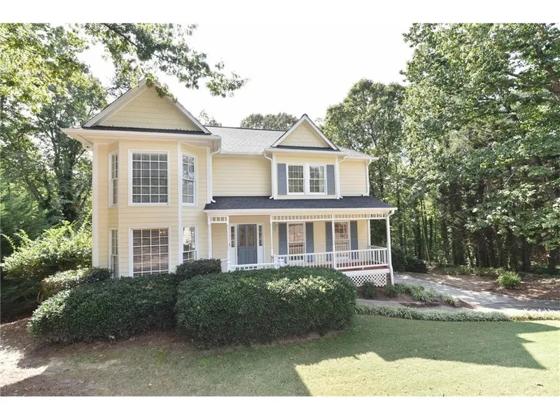Well-maintained traditional home, with freshly painted rocking chair front porch and large deck overlooking wooded back yard on .65 acres, convenient to GA 400, restaurants, shopping, and Lake Lanier. Large secondary bedrooms, bay windows, updated kitchen with new granite, SS appliances. In tax records as 4 bedrooms - master bedroom was enlarged by converting 4th bedroom into extra sitting room - enjoy the extra space for sitting area or home office, or easily convert into 4th bedroom. Newer efficient HVAC.