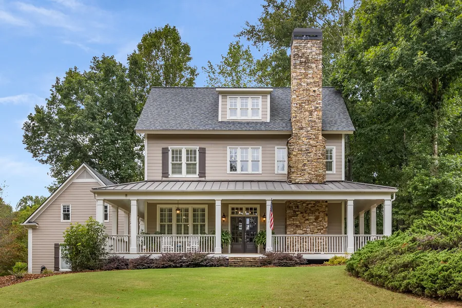 Discover a rare opportunity to own a stunning, updated estate home in the prestigious Chattahoochee River Club -- one of metro Atlanta's most desirable swim/tennis communities along the Chattahoochee River. Situated atop an elevated corner lot in the neighborhood's coveted Two Rivers enclave, this five-bedroom, five-bath home has been brilliantly upgraded with a bright new kitchen, luxurious new primary suite with spa-inspired bath, finished basement with bar and guest suite, new roof, custom lighting, crown moulding, plantation shutters, fresh paint, gleaming hardwoods and new landscaping. Savor the forested views from this elegant home's wrap-around front porch, featuring stacked-stone accents and breezeway access to a large three-car garage. Inside the French front doors, the inviting two-story entry hall welcomes one to a large formal dining room with columns and wainscoting. Across the hall is a private office, with a fireplace and custom built-in bookcases. The heart of this home is a spacious great room featuring a tray ceiling, stacked-stone fireplace, custom built-ins, soaring windows and access to a new deck and peaceful woodland and (seasonal) lake views. The spacious, inviting kitchen -- complementing the adjacent great room -- features quartz counters, an over-sized island, custom cabinetry, stainless appliances, plentiful storage, walk-in pantry, a light-filled breakfast room with seating for eight, and a welcoming mud room with garage access. On the second level, one finds the luxurious primary suite -- a private retreat with a spa-inspired bath, separate marble vanities, custom soaking tub, frame-less shower and walk-in closets. Two additional bedrooms with full baths and a laundry room complete this level. Upstairs, is a large and bright bonus room, with cozy built-in window seats and shelving, and an adjacent bedroom and bath. The remodeled lower level features a guest suite with bath, hardwood floors, a large bar with refrigerator, an office, custom shelving, a pool table, and relaxing lounge space -- accented with windows and walk-out access to the private, shaded backyard. This level also includes a workshop and plentiful storage. The large three-car garage features an unfinished upstairs level that is fully stubbed and brightened by multiple windows -- presenting the perfect opportunity for a private apartment or guest quarters. This custom home enjoys a coveted location within a quiet neighborhood with access to forested walking paths leading to the Chattahoochee River and stocked neighborhood lakes, and the community's award-winning lifestyle amenities -- including hiking trails, a luxurious clubhouse, resort-style pools and tennis courts, playgrounds and vibrant social clubs. Additionally, the community is served by top-ranked schools, and is close to Lake Lanier and popular shopping and dining destination