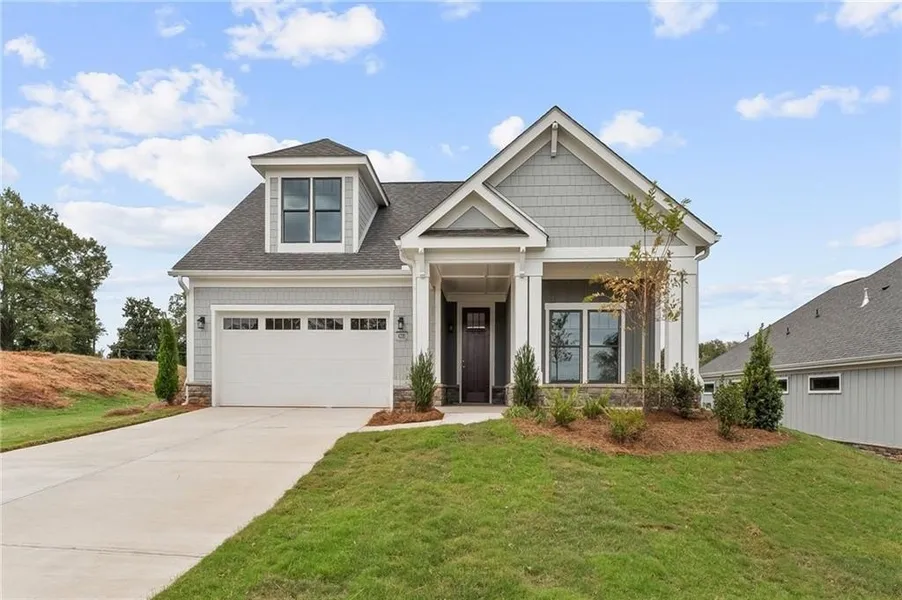 Move in ready... Popular Portico Bonus Plan! This conveniently located 55+ community offers just 28 exclusive luxury ranch homesites. Enjoy low-maintenance living, open and thoughtfully designed floorplans, and a vibrant lifestyle, all in a prime location! The Portico Bonus Suite offers an efficient luxury ranch floor plan, designed to maximize the space in your home. The first floor features a large Owner's Suite with dual closets, a centrally located den/office, open kitchen, and additional bedroom with bath tucked away from the primary. The well-appointed Deluxe kitchen opens up to defined living and dining spaces, while looking directly out into your private, fenced side courtyard. High-end finishes include 8-foot doors, a shiplap gas fireplace, quartz countertops, zero-entry tile shower in the primary, Pella windows, and stainless GE appliances. The Courtyards at Post Road offers easy living with included lawn maintenance, a dog park, and a firepit pavilion.