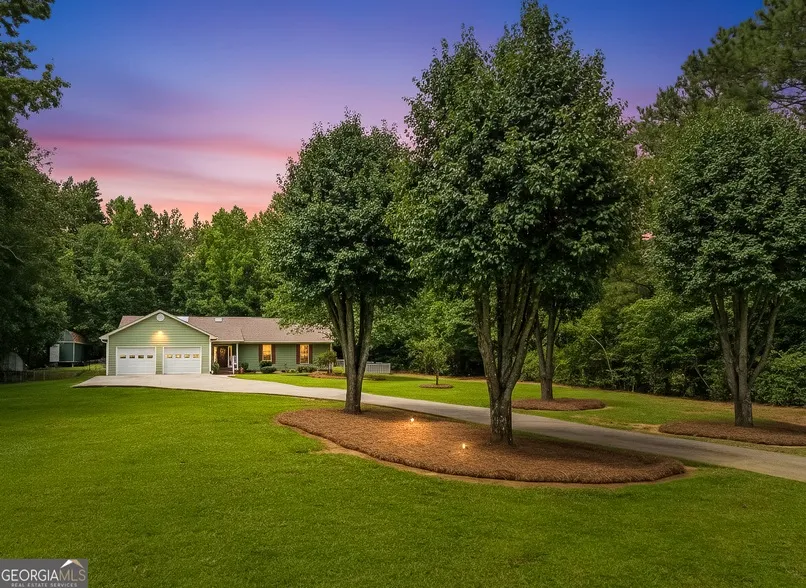 Extensively renovated onelevel ranch with fabulous style and function! Two luxurious primary suites-each with ensuite bath and walkin closet-plus cathedral open-concept living. The stunning walnut hardwood floors flow through the home, leading to an exceptional kitchen featuring quartz-topped center island, premium cabinetry, and stainless appliances. Exterior freshened with new Hardie-Plank siding. Enjoy a large private back deck, perfect for entertaining or quiet relaxation. Ample outdoor storage, generous parking, and all situated on a private, level 1.75-acre lot. Enjoy easy, single-level living in a serene and spacious setting.