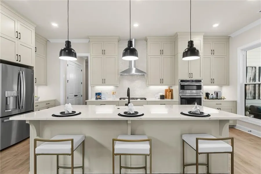 NEW HOME, NEW YEAR!! $20,000 additional incentive to be used towards this home! Arden Collection featuring Welcome to your Dream Home, where luxury meets tranquility. This exceptional two story ranch style plan is perfectly situated on a private lot, ensuring peace and seclusion. As you enter, you are greeted by a a foyer that flows into an open-concept living space adorned with elegant finishes and hardwood floors throughout. The spacious living room with its soaring ceilings and cozy fireplace, is perfect for both entertaining guests and quiet family evenings. The gourmet kitchen is a Chef's delight, with Stainless steel GE cooktop and microwave/oven combo, Cambria quartz countertops with eased edge, upgraded white kitchen stacked cabinets that have soft close drawers and doors, oversized island with pull-out trashcan and sink opens up to vaulted family and dining room with lots of lig...