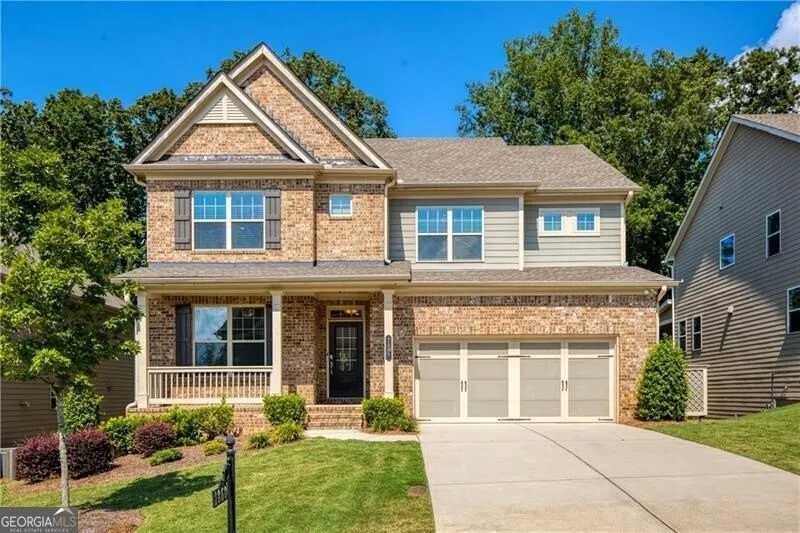 Welcome to this stunning 5-year-old home that looks and feels brand new! From the inviting front porch to the expansive covered back porch with its own fireplace, this home is designed for both relaxation and entertaining. Inside, the open floorplan features a spacious family room with built-ins and a fireplace, a bright dining area, and a showstopping white kitchen with oversized island, abundant cabinetry, and plenty of room for gathering. A main floor bedroom with a full bath just steps away is perfect for in-laws or a private home office. Upstairs, the luxurious primary suite overlooks the backyard and includes double vanities and a large walk-in closet. Four additional bedrooms, two full baths, and a convenient upstairs laundry room offer plenty of space for everyone. The full, unfinished basement is ready for your personal touch. Enjoy a walk-out backyard where the HOA maintains the landscaping-including mowing and pine straw-so you can spend more time enjoying the neighborhood amenities: 2 pools, tennis, pickleball, basketball courts, high tech gym with rotating rock wall, sidewalks, and more. Conveniently located near top schools and shopping, this home truly has it all!