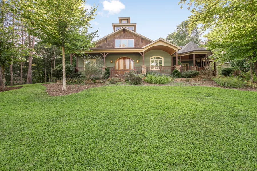 Exquisite custom rustic modern lodge home by Matt Menzi Inc! Located in one of the Triads most coveted gated communities. Lake at Lissara, true to it's meaning "beautiful valley" - this one owner custom home has unparalleled craftsmanship throughout. The multi level atrium entry is only the start to the custom features. The open main floor showcases a stone fireplace w/ built ins, wooden beamed vaulted ceiling, gourmet kitchen w/ cooktop and custom cabinets, library w/ vaulted ceiling, split bedroom plan w/ in-law suite and safe room - upstairs the fourth bedroom suite and 5th BR have tons of possibilities - perfect for extended family and friends, craft room or a premiere home office. Additional unfinished spaces allows buyer to decide how to finish while providing exceptional storage. The screened porch w/vaulted ceiling and fireplace overlook the Michael Phelps swim spa and natural garden spaces. Please see attachment for a complete list of selections.