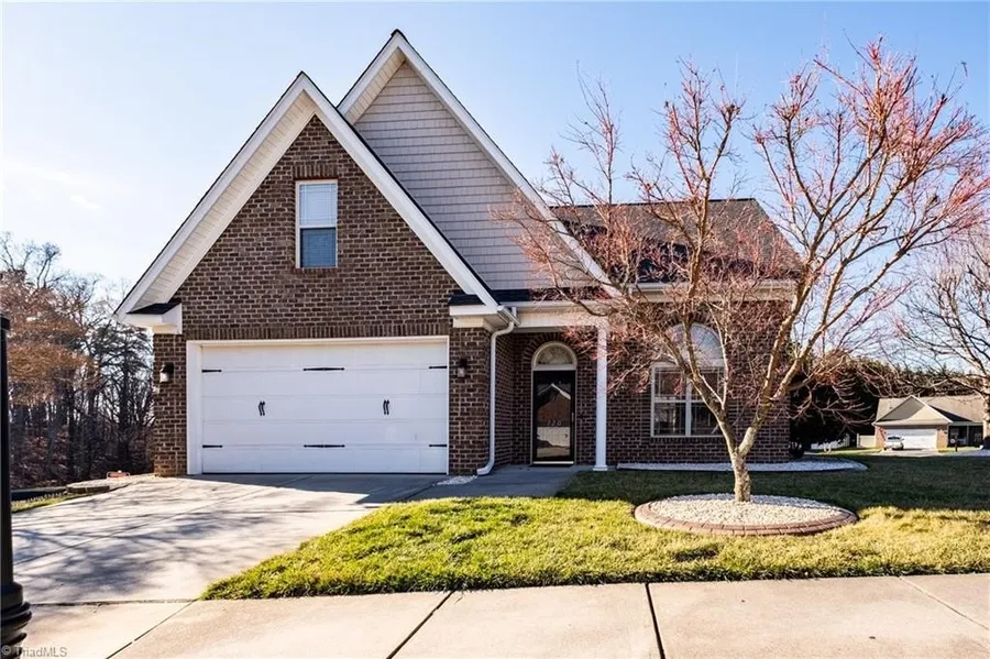 Sought after Stafford Park historic location. Convenient to everything: shopping, medical, entertainment and Greensboro, Winston Salem and High Point. Full brick exterior. Flat entry (no steps) in front and back. Primary bedroom on main level with newly renovated primary bath. 1/2 bath on main level updated. Vaulted ceiling and gas logs in great room. Sunny Kitchen exits to patio. Kitchen has large pantry, granite counter tops, smooth top range and double oven. Refrigerator and washer/dryer to remain. Bonus room has window and could be the extra room you have always needed: office, playroom, media room. Corner lot with privacy on bath sides. Roof 2018, A/C 2012 water heater (50 gal.) 2024. Ring security system. Camera motion in great room. 2 control panels. Windows with sensors. System controlled by phone. Nest thermostat controlled by phone. 1 outside camera above garage and front an...