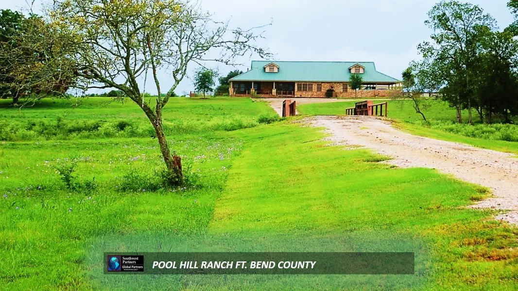 Precisely positioned in the center of the road frontage, the tree line opens up to a wrought iron fenced front gate. As you turn into the entry you have an unobstructed view of a 1,000+ drive to the Ranch Home over a private bridge spanning Bessies Creek to the Pool Hill Ranch home.