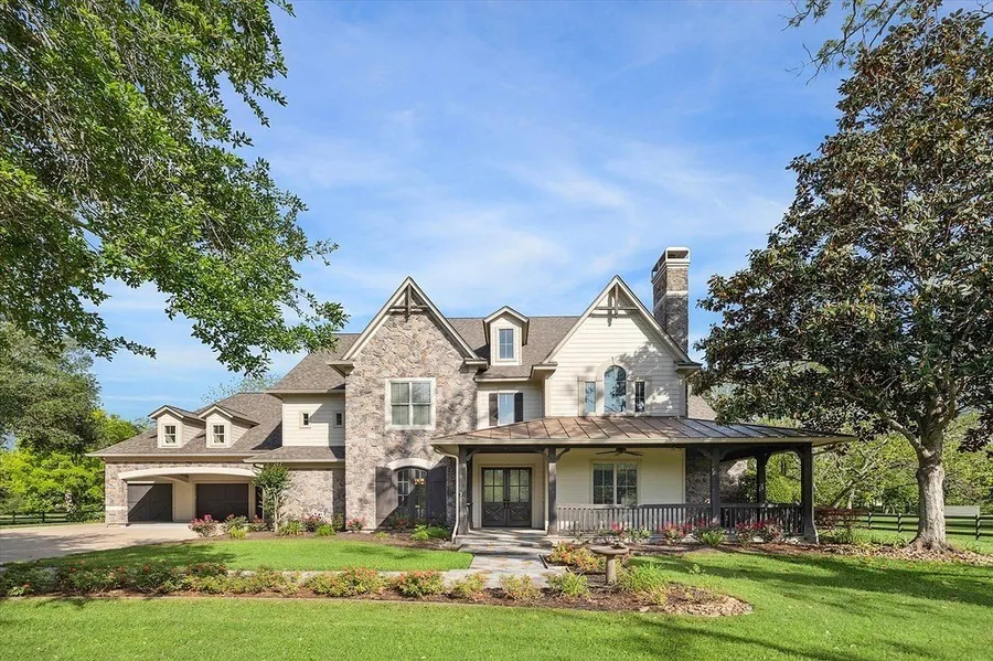 Welcome to a rare opportunity for refined lakefront living on over an acre of beautifully landscaped property shaded by mature pecan trees. This exceptional 6,000-square-foot estate offers the perfect balance of privacy, space, and modern luxury?all nestled in a peaceful, sought-after neighborhood just minutes from shopping, dining, and top-tier schools. From the moment you arrive at gated entrance, you?re greeted by impeccable curb appeal and a spacious three-car garage. Step through the grand entryway into an expansive open-concept living area designed for both relaxed living and elegant entertaining. Soaring ceilings, abundant natural light, and seamless indoor-outdoor flow create a warm, inviting atmosphere throughout the home. The heart of the home is a stunning kitchen that flows effortlessly into the living and dining areas?perfect for gatherings large or small. Just beyond, discover a luxurious master suite on the main floor featuring a private sitting area, spa-style en-suite bathroom, and serene views of the lake and pool. Upstairs, generously sized bedrooms each include their own bathrooms. A separate living quarters with a full kitchen provides even more flexibility?ideal for multigenerational living, long-term guests, or a private home office. Step outside to your personal oasis: a large saltwater pool surrounded by lush landscaping, an outdoor kitchen, and a cozy fireplace for year-round enjoyment. Whether you?re enjoying a quiet morning coffee by the water or entertaining guests under the stars, this outdoor space is a true showstopper. A Generac generator and well add peace of mind and self-sufficiency. This home combines natural beauty, luxurious details, and everyday convenience in one extraordinary package. If you?re seeking space, sophistication, and the serenity of lakefront living?this is the one. Additional 1.1 acre lot next door available.
