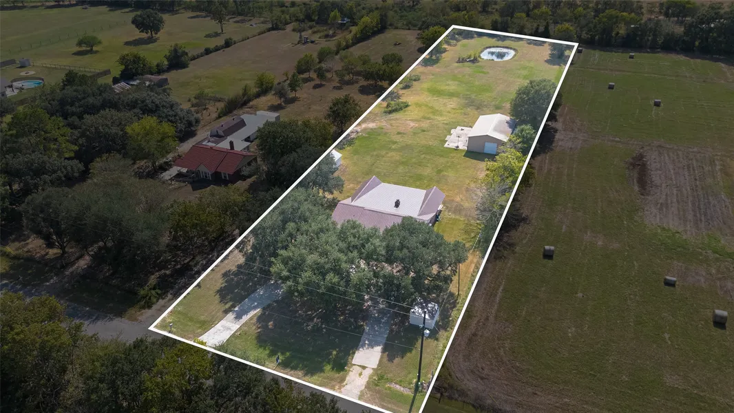 Welcome to your private retreat nestled on 2.392 serene acres, surrounded by mature oak trees and natural beauty. This beautiful property offers the perfect blend of country charm and everyday convenience, featuring a large shop, a tranquil pond, and easy access to US 59.