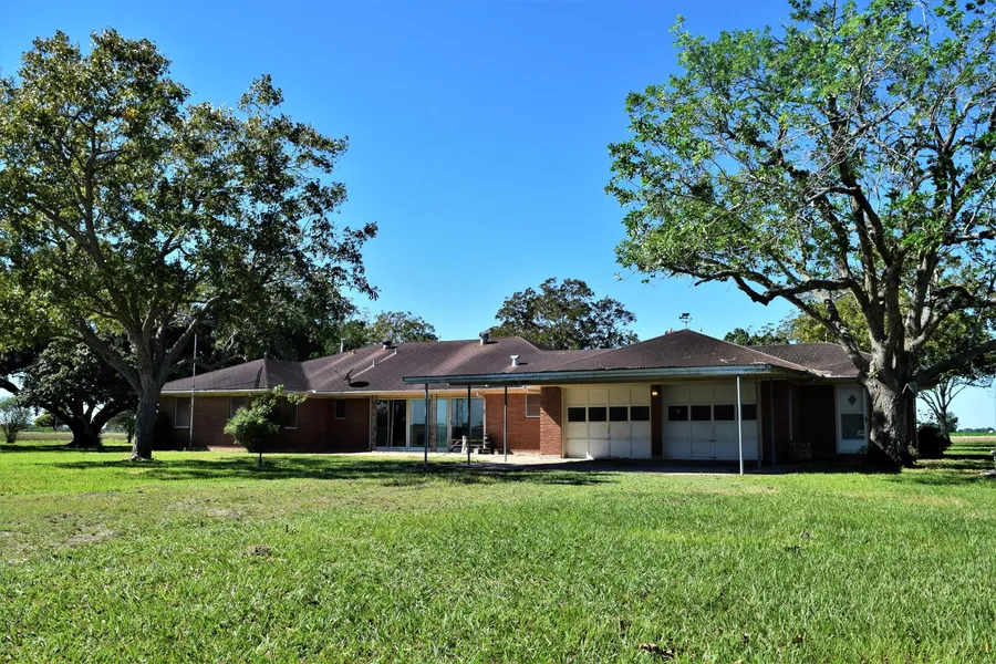 Beautiful country home less than 1 mile from Hwy 59 with 3 tree filled acres. Mature pecan and oak trees through out the property with a huge 5,000 square foot metal barn with concrete slab! Live the quiet country life with access to 59 in less than a minute! The property is surrounded by crop fields which allows for quiet country ambiance.