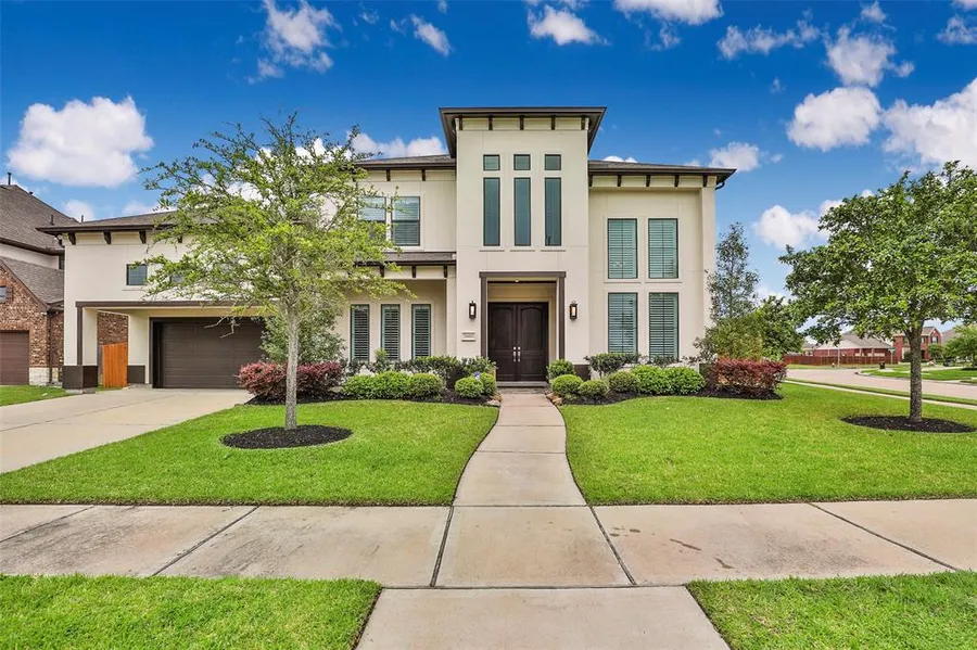 Gorgeous Newmark home offering great space and entertainment areas for family and friends. Stucco home painted in April 2019. Heated pool and Jacuzzi with a fire feature. Corner lot, offers space for kids and pets to run and play. Wide open floor plan with 20 ft soaring ceilings and a wall of windows overlooking the backyard paradise. Huge master with sitting area, his and hers walk in closets, separate whirlpool tub and shower. 2nd master down with en suite. This owner installed wooden shutters providing next level elegance. Formal dining and den border the entry way. 3 bedrooms, game room and media room on the 2nd level. CHECK THE TOUR LINKS AND DO A PRIVATE WALK THROUGH THIS HOME. Located near the intersection of Cinco Ranch & FM 1463. Less than a mile from the HEB, 5 miles from the Cinco Ranch City Center. Cinco Ranch boasts 17 tennis courts, 11 neighborhood pools, a water park and beach club. Make this your next home you will be happy you did.