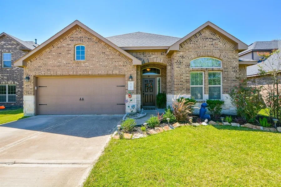 Gorgeous DR Horton 2328 floorplan is a one-story home that is brick on all four sides and located in the highly desirable Bonbrook Plantation. This home has many upgrades you will notice immediately like the impressive coffered ceilings in the spacious foyer & formal dining room. The gourmet kitchen has lots of cabinets, a huge granite peninsula is great for serving with plenty of bar seating for the whole gang, and a prep island as well for the cook. Open floor plan with split bedrooms allowing for additional privacy for the primary bedroom. Ensuite bath with double vanities, deep garden tub, glass shower, and huge walk-in closet. Working from home? No problem there is a huge separate study located at the front of the home with lovely windows and beautiful french doors for privacy, could also be a 5th bedroom if you needed it to be. Pull out double vinyl windows REAL HARDWOOD FLOORS in the living areas, beautiful cast stone fireplace. covered patio with ceiling fan and brick columns.