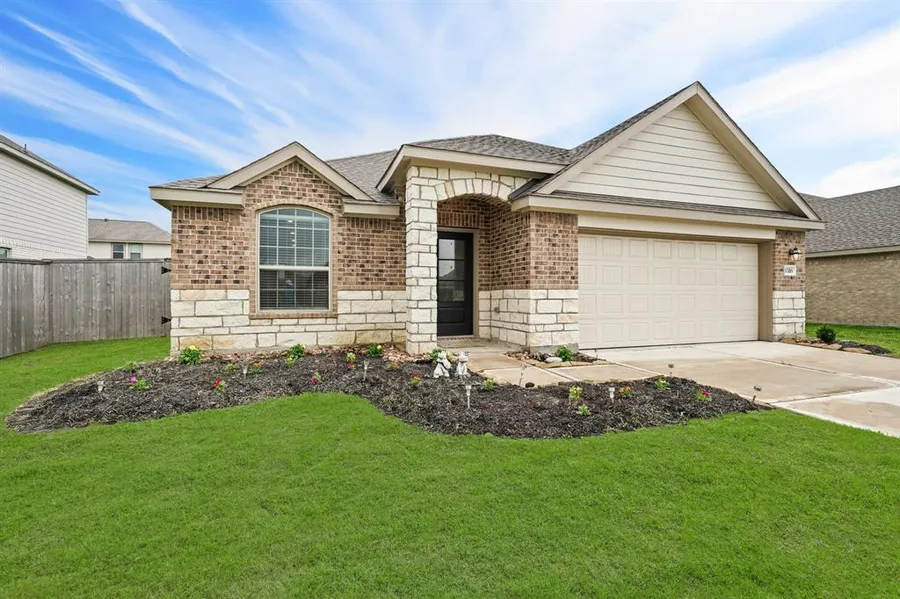 Welcome to suburban tranquility just moments from city conveniences! This stunning 2022-built home offers peace of mind with recent construction. Inviting, single-story living with 3 bedrooms, 2 baths, and hard surface floors throughout. The updated kitchen is a culinary haven, featuring sleek countertops, stainless steel appliances, and ample storage space, ensuring both convenience and culinary delights. The covered patio overlooks the expansive backyard, perfect for outdoor gatherings and barbecues. Enjoy the timeless charm of stone and brick elevation. Located just a quick trip to Brazos Town Center and close to the city, this residence offers the best of both worlds. Experience the epitome of modern living in this peaceful suburban retreat. Welcome home!