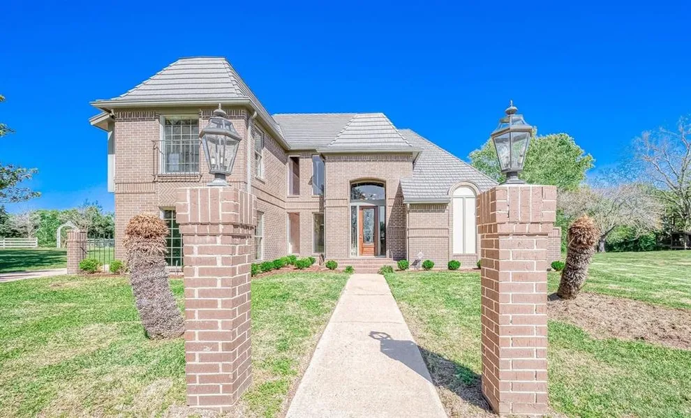 Prestigious Estate! Truly a Rare Find 9.87 Gorgeous Acres. Welcome Guests through the Spectacular Entry. Cathedral Ceiling, Crown Molding, Custom Woodwork. Metal Roof. Impressive Living Rm boasts Fireplace Floor to Ceiling Hearth. Tons of Natural Light throughout. Family/Study has beautiful Wood details, 2nd Fireplace, Wet Bar, & Doors open to Patio. Move effortlessly to the Large Eat in Kitchen Breakfast Area, Abundant Cabinetry, loads of Counterspace, SS Refrigerator, Island Cooktop, Double Oven & Microwave Walkin Pantry. Elegant Formal Dining Rm to host family gatherings. 4 Large Bedrms, 3 Full Bths, ½ bth. Peaceful Primary 1st floor, Ensuite Bth, Double Sinks, Large Shower, Walkin Closet. 3 Spacious Guest Bedrms, Gorgeous Windows. Bring the Horses! Charming Stables, Feed & Tack Rms, Fenced Lush Green Pastures, Majestic Pecan Trees. Enjoy Peace & Tranquility on the Patio while childre...