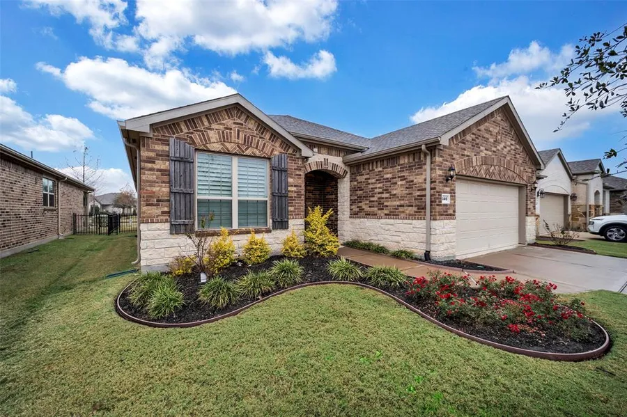 This meticulously maintained single story Martin Ray floorplan offers a cook's kitchen, grand open spaces, high ceilings, crown Moldings, open dining and gathering areas, butler's pantry and huge walk-in pantry. Beautiful rich upgraded cabinetry and hardware, light solid surface quartz countertops, stainless appliances, big island with seating for guests. Both bedrooms are generously sized, and the storage in this plan is great. The walk-in closet in the Primary bedroom is huge! Inset tray ceiling in the master and the secondary as well. Lovely custom plantation shutters grace the low e glass energy efficient windows. The upgraded tile flooring is light toned and flows beautifully throughout the home. The flex room can be utilized for so many different activities from home office, craft room, library or music room. Relax al fresco on the generously sized covered back porch and enjoy the privacy lot with no immediate back neighbors. Fridge, washer & dryer included for convenience.