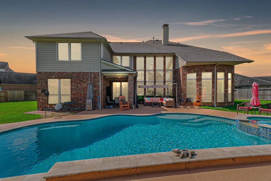 Stunning 5BR/4.5BA Perry Home on oversized cul-de-sac lot in Firethorne, just steps from top-rated Katy ISD Wolman Elementary! Backyard retreat features heated pool/spa, large covered patio & lawn perfect for play or volleyball. Inside, enjoy a 2-story family room with a wall of windows, open-concept kitchen with massive island to rival Greenland, granite counters, white cabinets & stainless appliances. First-floor primary suite offers 2 walk-in closets & spa-like bath, plus a 2nd first-story en-suite bedroom—ideal for guests or multi-generational living. Upstairs: 3 bedrooms, game room & media room. HUGE 4-car TANDEM garage, NEW GAF PLUS CERTIFIED ROOF (2025), & recent AC updates. NEVER FLOODED. Located in the sought-after Firethorne community, amenities include resort and Olympic-sized pools, tennis courts, lighted sports fields, fitness center, lakes, trails, two clubhouses, and a wildlife preserve. This home delivers the perfect blend of luxury, space, and location—don't miss it!