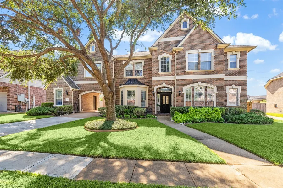 Tucked away on a premium lot with no back neighbors, this stunning 4-bed, 3.5-bath home blends privacy, style & versatility. A grand entry welcomes you with soaring ceilings, hardwood floors & elegant touches like plantation shutters in formal dining & study. The study—already plumbed—offers potential as a 5th bedroom, wellness room, or wine/bar room. Open kitchen & living area create the perfect space for gathering. The primary suite boasts a sitting area with serene backyard views, dual closets, garden tub & separate shower. Upstairs features 3 spacious bedrooms, 2 full baths, game room & media room for endless fun. Step outside to your backyard retreat with a sparkling pool & fire pit area—ideal for entertaining or unwinding. The additional detached garage, also plumbed, is ready to become a man cave, she shed, art studio, or guest suite. This home offers the ultimate blend of comfort...