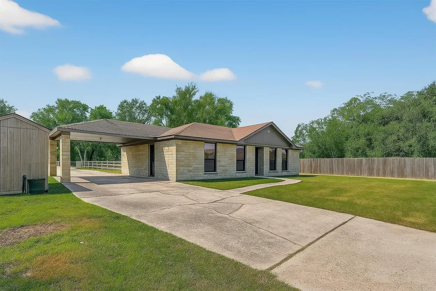 Discover endless possibilities at 13619 Florence Road in Sugar Land! Located in a no-restrictions area, this property offers the rare opportunity to be used as a private residence, small business, or investment property. Inside, the home features a spacious open layout with warm brick accents, updated flooring, and a remodeled kitchen complete with modern cabinetry, subway tile backsplash, and plenty of counter space. Large windows bring in natural light, creating a welcoming atmosphere throughout. The expansive lot that is just a little over 1/2 acre provides ample outdoor space, including covered parking, a large carport, a deck area, and mature shade trees. With room to grow and easy access to major roads, this property is ideal for those seeking flexibility—whether for home living, business use, or both.