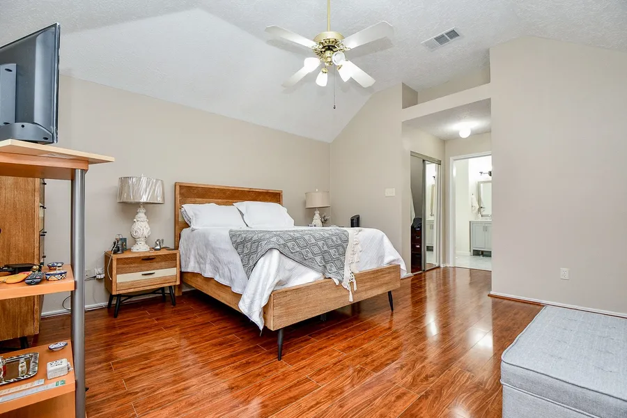 Located at *1230 Mountain Lake Drive, Missouri City, TX 77459*, this well-maintained, mainly brick home offers approximately 2,300 sq ft of comfortable living on a quiet cul-de-sac with lush landscaping and double driveway parking. The home features 3 bedrooms, 2 full baths, and a 2-car attached garage, with high ceilings throughout and no carpet—only attractive wood-type and tile flooring. The spacious kitchen includes granite countertops, a breakfast bar, bright lighting, a small walk-in pantry, and a conveniently located washer and dryer area. A dining and family room combination provides an open, functional layout ideal for everyday living. The primary suite is bright and modern, offering dual sinks, contemporary mirrors, a separate soaking tub, and a separate shower. Enjoy the enclosed covered patio with tile flooring for year-round use. Centrally located in the Southwest Houston area, this very clean home is ready for viewing—schedule your private tour with your realtor today.