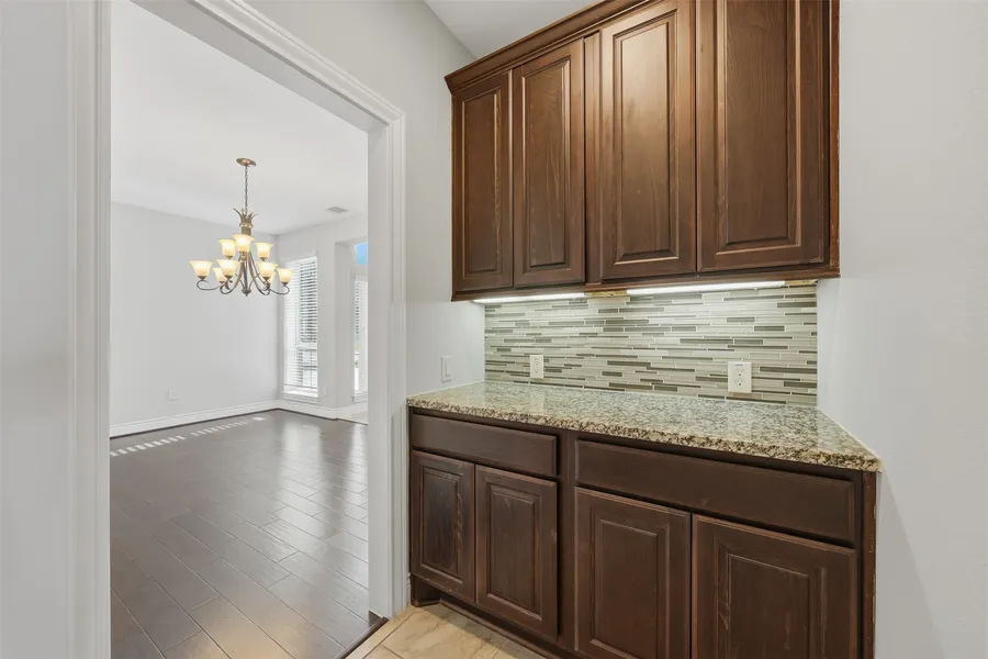 Beautiful Perry home! Grand two-story rotunda entry with a dramatic 19-foot ceiling, framed by a private home office/study with French doors and a formal dining room. Two full bedrooms and baths are located downstairs, both with new carpet, and the home has been freshly painted throughout. The two-story family room features a wall of windows, ceramic tile flooring, and a cast-stone fireplace, opening seamlessly to the morning area. The kitchen offers an island with built-in seating, granite countertops, 42-inch raised-panel cabinets, a walk-in pantry, and a Butler’s pantry—perfect for entertaining. The private primary suite showcases a wall of windows with serene backyard views. Additional highlights include an extended covered patio and no rear neighbors for added privacy.