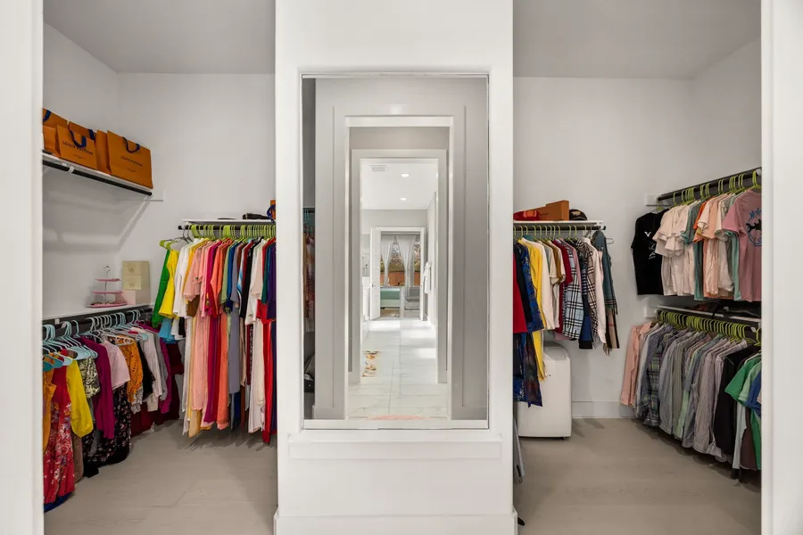 Chef's kitchen features top stainless steel appliances, ceiling height cabinetry with accent lighting, oversized island, quartz countertops, pot filler, & walk-in butler's pantry.