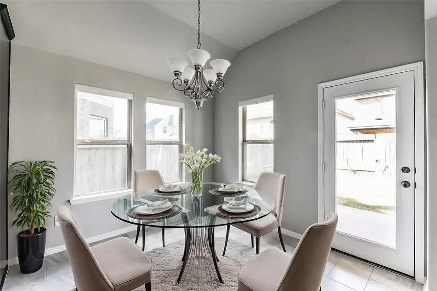 New pricing&ready to sell. This stylish, open-concept home blends comfort and design with light-filled living spaces. The kitchen impresses with custom cabinetry, glass subway tile backsplash, granite countertops, under-cabinet lighting & a spacious walk-in pantry, flowing seamlessly into the breakfast nook & family room,perfect for entertaining or everyday living. Porcelain tile flooring extends through the entry, dining, kitchen, living, & wet areas for lasting beauty and durability. The home offers 3 bedrooms, 2.5 baths, plus a private study with French doors. The primary suite is a relaxing retreat featuring dual granite vanities, a garden tub, walk-in shower, and generous closet space. High ceilings, an extended entry, and a cast-stone fireplace add elegance, while custom blinds, a whole-home water softener, and a two-car garage provide convenience. Enjoy outdoor living on the overs...