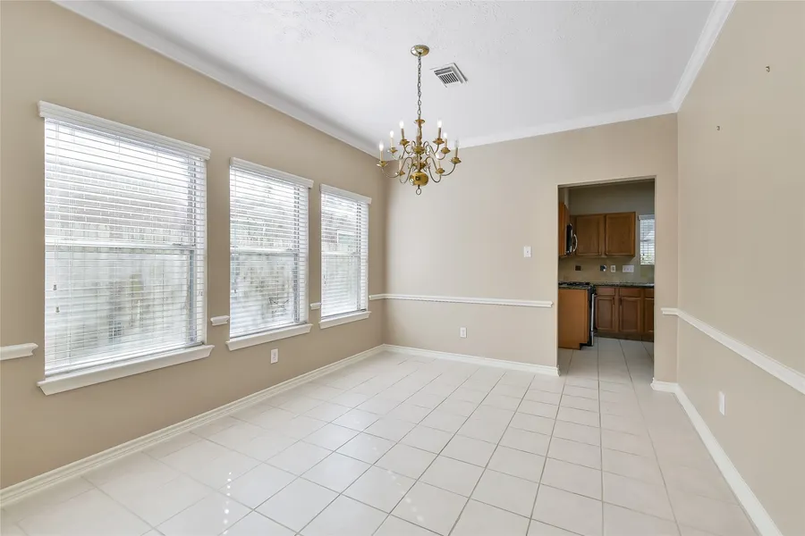 Brick-front home in New Territory offering a flowing layout, open living spaces, and access to extensive community amenities. Two-story foyer opens to a large living area with a wall of windows, a corner fireplace, and tile flooring. Kitchen features granite counters, stainless steel appliances, a center island, and open sightlines to the breakfast nook. The dining room overlooks the front landscaping. All bedrooms upstairs. The garage has been converted into an air-conditioned flex room (not included in the listed square footage). Fully fenced backyard with mature trees, brick privacy wall, open lawn, and patio pad. New Territory community amenities include pools, a fitness center, tennis courts, pickleball, sports fields, and miles of greenbelts. Approx. 0.3 mi to New Territory Club, 1.2 mi to Starbucks and Kroger, 2.2 mi to Hwy 6, and 4.0 mi to First Colony Mall and Sugar Land Town Sq...