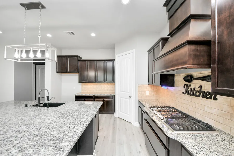 Here's the perfect opportunity to live in Riverstone with easy access to University Blvd, the Riverstone Community Center and more! This Emerald Homes Eldorado floor plan features spacious rooms, open kitchen/living concept, and upgraded showers in both the Primary and Secondary bath. Waterproof laminate flooring throughout. If a large kitchen island is on the checklist, this one is great for preparing favorite meals and sit-up dining experiences. Notice the custom lighting throughout - in the kitchen, in the dining, in the Primary bedroom, in the Primary bath. The extended back patio offers plenty of space to hang out and enjoy entertaining.