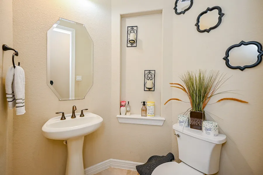 The main entry is located beyond a spacious courtyard. Inside, the entry features a rounded staircase and flows to the open dining room and an open area for gathering. The master suite features an extended sitting area. Off the hallway to the owners' retreat, the double-door study views the courtyard. The private guest suite is perfect for frequent visitors, in-law suite or as a home-office. The upstairs features an open game room, a media room and generous sized secondary bedrooms.