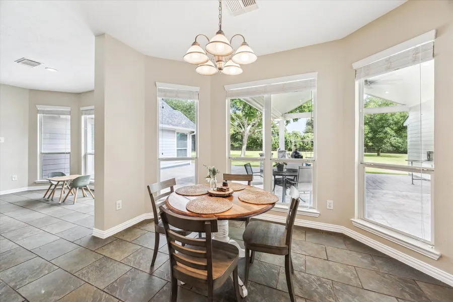 This charming home on a 1-acre lot in Fulbrook offers the peace of country living with nearby city access. A cozy covered front porch sets the tone. Inside, the formal dining room is perfect for entertaining. The den/game room features large windows, soaring ceilings, and recessed lighting. The kitchen offers a center island with cooktop, ample cabinetry, and is open to the breakfast area and living room. The spacious primary suite includes a sitting area and a wall of windows overlooking the spacious backyard. The updated ensuite bath features dual vanities, a jetted tub, and a walk-in shower. Secondary bedrooms are generously sized complete with Jack and Jill bath. A third full bath and private office (optional 4th bedroom) add flexibility. No carpet! Detached 3-car garage provides added convenience. The sprawling backyard has room for a pool, garden, or play area—anchored by a large ...