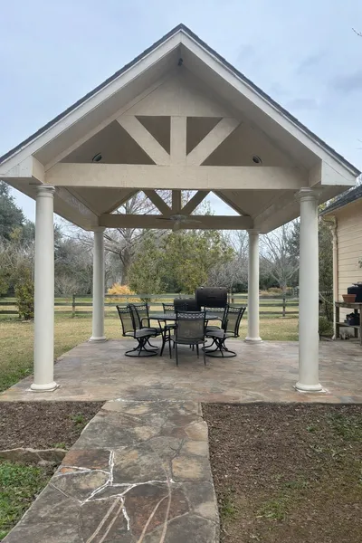 Located in the sought-after Fulbrook Creeks community, this 4BR, 2.5-BA home delivers space, function, and standout upgrades on a large lot. Soaring 10-foot ceilings, hardwood and tile floors, custom built-ins, and an open-concept layout create a clean, elevated feel throughout. The kitchen features a generous breakfast bar, butler’s pantry, and seamless flow into the main living areas—ideal for entertaining. A private office offers two custom built-in desks and ample cabinetry. The spacious primary suite includes a sitting area, a spa-style bath with a two-person soaking tub & an oversized closet with custom shelving. Secondary bedrooms all include walk-in closets. Enjoy the extended flagstone covered patio, gazebo with porch swing, and a producing pecan tree. Car enthusiasts and hobbyists will appreciate the attached 3-car garage plus a detached 3-car garage with 12-foot doors and elevator access to the second level. Energy-efficient insulation keeps utility costs impressively low.