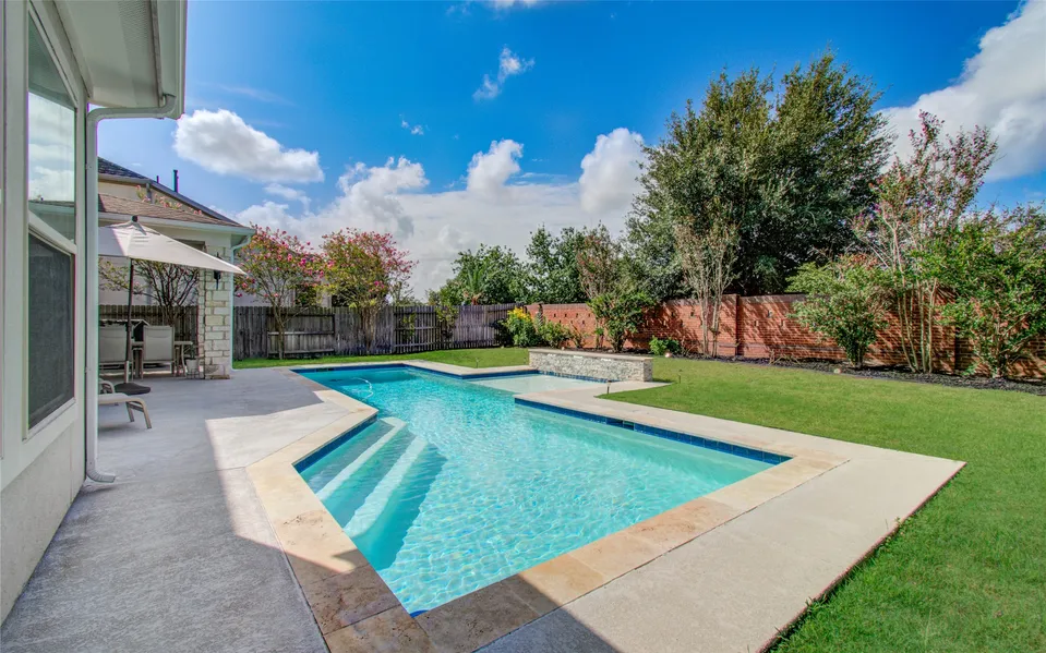 Beautiful 5-bed, 4-bath stucco & stone home with 3-car tandem-garagein sought-after Cinco Ranch, zoned to top-rated Katy ISD. Features hardwood floors, private study, formal dining, and spacious family room with stone fireplace and floor-to-ceiling windows overlooking the pool. Gourmet kitchen with large island, granite countertops, updated cabinetry, stainless steel appliances, and breakfast area. First-floor primary suite with 14’ tray ceiling, dual vanities, soaking tub, and separate shower. Secondary bedroom with full bath downstairs. Upstairs offers 3 bedrooms with Jack-and-Jill bath, game room, and media room pre-wired for surround sound. Private backyard oasis with pool, water feature, covered patio, extended decking, and no back neighbors. Walking distance to Cinco Ranch waterpark, tennis courts, parks, and schools.