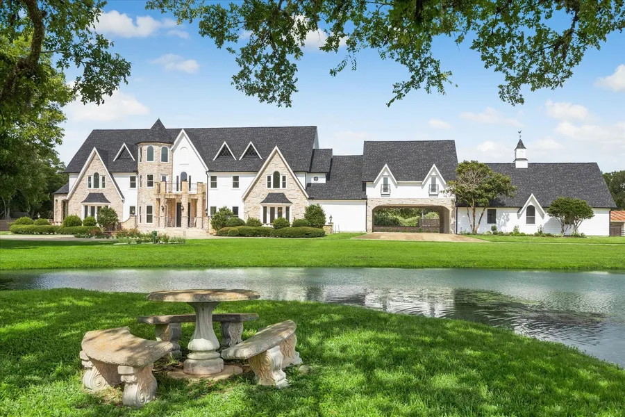 Stunning 13.9 acres property in Fulshear with a beautiful house originally designed by Lucian Hood & completely remodeled. The centerpiece of the property is its 8 bedroom, 6.3 bathrooms, 9,975 sqft custom home. Crafted with attention to detail, the house features open living and dining areas, spacious bedrooms & large areas to entertain/host friends & family. Enjoy scenic views from both the upstairs & downstairs covered porches, a perfect spot in the mornings & evenings for relaxation. Additional amenities include an outdoor kitchen pavilion, private pool/hot tub, private pond & tennis court. For equestrian enthusiasts, a 8 stall barn with attached pavilion within close proximity to the house. For longer term guests or on site property manager, there is a nicely renovated 2 bedroom/1 bathroom private guest house. Easy access to the Westpark Tollway, less than 40 minutes to City Centre, 15 minutes to Katy & 5 minutes to downtown Fulshear for all of your grocery & dining needs.