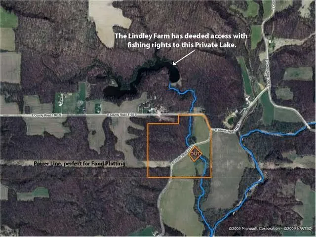 +/- 34 acres total, +/- 12 acres tillable, +/- 22 acres mature timber. 850 sq. ft. block home, 2 bedroom, 1 bathroom, newer gas furnace. 24 x 36 garage Well and septic Rock bottom creek, running water year around. Creek is located directly behind the house. Excellent deer and turkey hunting. Mature marketable timber Deeded access with fishing rights to a private lake located north of the property. Secluded and private. The Lindley farm is an ideal weekend retreat. Spend your weekends hunting, fishing, and riding 4 wheelers. The tillable ground is currently planted in clover generating $600 per yr. income. The tillable fields are ideal for organic farming, gardening, or pasture for livestock. Access to the private lake is a short walk or 4 wheeler ride north of the farm.