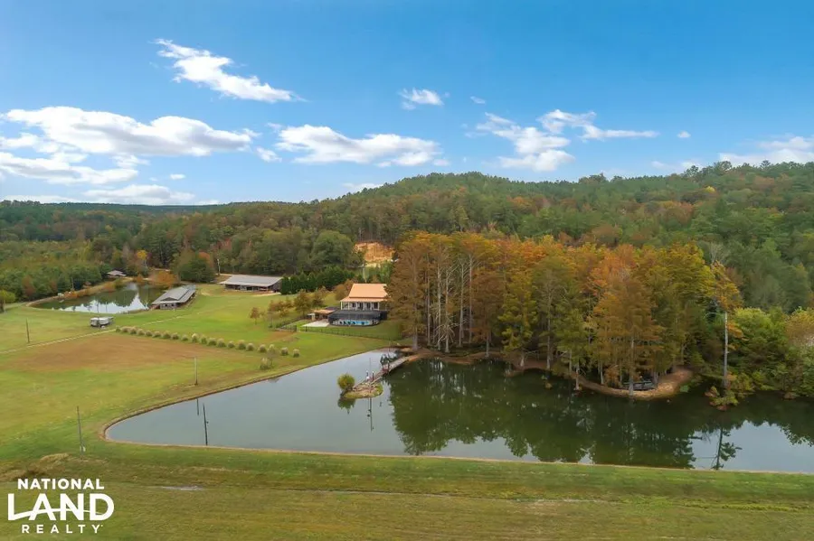 Relax in the custom 7700 sqft home overlooking the pristine pasture and pond. The home consists of 3 Bed/4 Bath with upstairs downstairs kitchens, game room, theater room, bar and upstairs downstairs dens. The back porch overlooks custom outdoor living area with pool (with custom screen), hot tub, and covered grilling/outdoor kitchen area. The house also overlooks a stocked ponds full of bass brim. Its the perfect place to raise a family. Property would also make a great Hunting Lodge, Weekend Getaway, or Corporate Retreat. Home and property would also make a great wedding or event venue. There is adjacent property that can also be purchased.