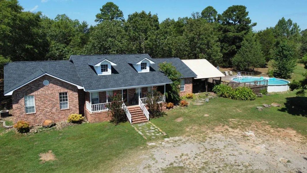 Stunning 3BR/2BA Home on 8 Acres w/ Pool, Outdoor Living & Country Privacy Just Minutes from Town! Escape to your own private retreat with this beautifully maintained 2,476 sq ft home situated on approximately 8 partially wooded acres +/-. Offering the perfect balance of privacy and convenience, this property is just minutes from town yet feels a world away. Inside, you'll find 3 spacious bedrooms, including a main suite with private access to a covered back patio, perfect for enjoying your morning coffee. The home boasts a huge family/media room, ideal for movie nights or entertaining, and a large kitchen with island bar, tons of cabinetry, and plenty of space for cooking and gathering. Storage is no issue here-this home features an abundance of closets and storage throughout! Step outside to experience the true magic of this property: an incredible covered outdoor living area complete with a fireplace and charming bed swing, all overlooking an above-ground pool with a large wraparound deck-your own backyard oasis! Relax on the covered front porch or enjoy the serene natural setting from the back. Key Features: 3 Bedrooms & 2 Bathrooms / Approx. 2,500 Sq Ft / 8± Partially Wooded Acres / Huge Family Room or Media Room / Large Kitchen with Island Bar / Above-Ground Pool (33 foot, 4 1/2 feet deep) with Large Deck / Living room with Country Frame fireplace that is ducted through the house / Covered Outdoor Living Space with Fireplace & Bed Swing / Covered Front & Back Porches / Main Suite with Patio Access / Eastern Views & Country Privacy / Minutes from Town. This property offers the best of both worlds-a quiet, private setting with easy access to town amenities. Don't miss your chance to own this slice of paradise. Schedule your private showing today! ***There is an adjoining property also for sale that has a metal 3 bay shop & office with single wide trailer on approx. 8acres***