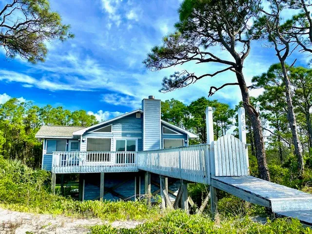 BEAUTIFUL SETTING ON ST GEORGE ISLAND. QUIET AND PEACEFUL. ENJOY YOUR HOME SURROUNDED BY TREES WITH THE BIRDS SINGING ENJOYING THE SUNRISE ON YOUR DECK WITH A CUP OF COFFEE, WITH BEAUTIFUL VIEWS OF THE GULF. EXTRA LARGE GARAGE, PLENTY OF ROOM FOR A SHOP