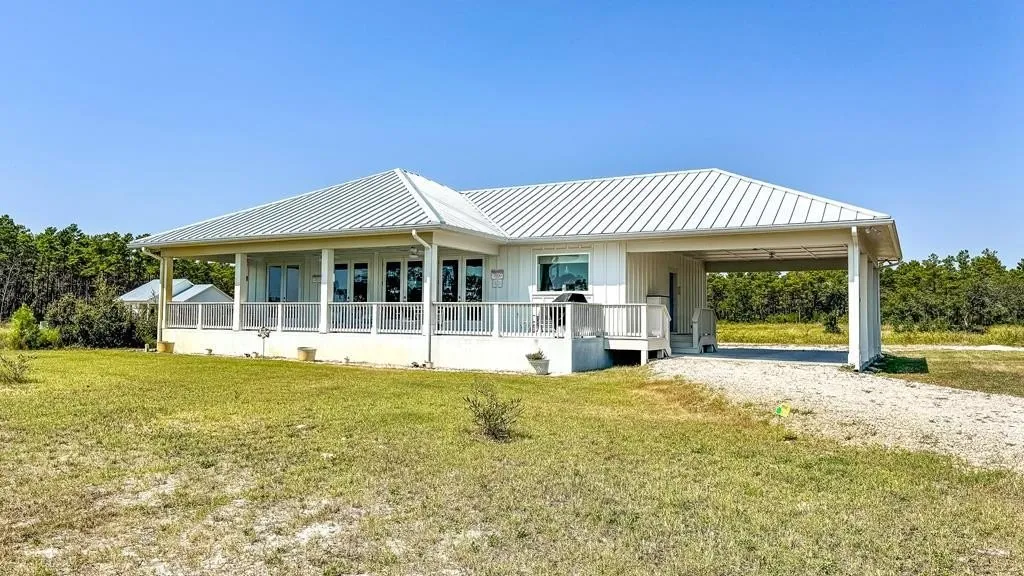 Welcome to this newer home in the sought-after Shell Bay Ct. Subdivision, a peaceful coastal community where natural beauty meets modern comfort. This thoughtfully designed residence offers 3 bedrooms and 2 full bathrooms, blending quality construction with stunning views and an inviting floor plan that's ideal for everyday living or a relaxing retreat. The spacious master suite is a true highlight, featuring a tiled walk-in shower with a sleek glass enclosure, a double vanity, and generous closet space. Two additional bedrooms provide room for family and guests, or the option to create a private home office or hobby room. At the heart of the home is a bright and open kitchen, complete with stainless steel appliances and a large walk-in pantry/laundry room that makes organization simple. Solar system installed in 2023 with a consumption offset of 73%. The adjoining living and dining spaces flow seamlessly to the outdoors, where a large covered front porch offers the perfect spot to sip coffee while watching the sunrise over the bay. Built for durability and low maintenance, the home features Hardie board siding, a long-lasting metal roof, and a solid slab foundation. These details ensure that the focus remains on enjoying the lifestyle this location provides. Situated on a generous 1.10-acre lot, the property takes full advantage of its setting with spectacular bay views of the cut between Dog Island and St. George Island. Located in the desirable X flood zone, the home is elevated with just a 3-step entry, making access easy and convenient. Outdoor enthusiasts will appreciate that water access is directly across the street, perfect for fishing, boating, or simply watching coastal birds in their natural habitat. For adventure on land, Tate's Hell State Forest is only minutes away, offering endless opportunities for hiking, kayaking, and wildlife exploration. Seller has a Bayfront lot with a seawall that could be purchased separately with an agreed-upon price.
