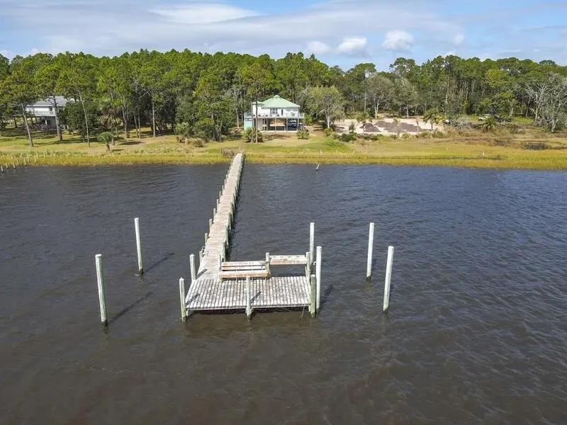 Private Elevator! Unique octagon shaped home with awesome views. When you turn into the tree lined driveway and see the views you will want to make this your home. This home is meticulous and beautiful. Three bedrooms / two baths all painted in soothing colors. Luxury vinyl flooring in all areas except bathrooms which are tile. The master bath has a huge walk-in shower. There is a loft which makes a perfect office or could be a meditation space. The kitchen, dining room and living room are all open. The deck is large and can be used for entertaining your guests. An elevator will lessen the burden of carrying all your items upstairs. Rinnai tankless water heater, outdoor shower, hurricane shutters are a few extras. A dock to keep your boat or put lines out to catch dinner. The views are endless. You will create many memories here. Don't let this one get away. Make your appointment today.