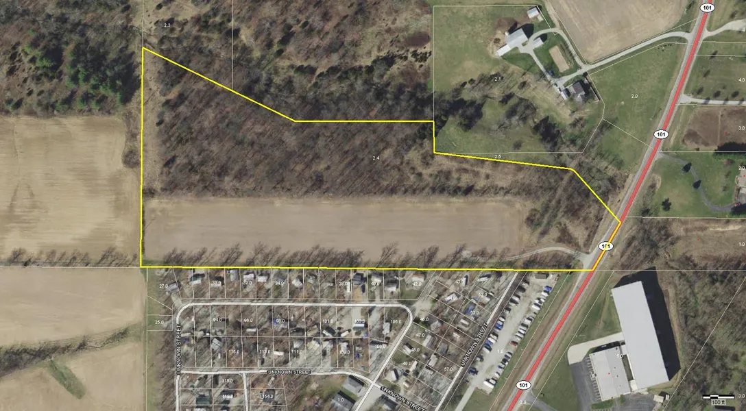 15.3 Acres on the east side of Brookville Lake with frontage on Indiana State Road 101. Property has approximately 6 acres tillable with the rest in woods and meadow. This property is zoned partially Ag and partially zoned Business. There is access to electric, high speed internet, water and sewer and also a deceleration lane for access to SR 101. It is possible for the buyer to split this property into 5 residential lots at this time.
