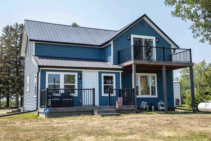 This beautiful home is move-in ready and sits on 4.46 acres with mature trees and incredible views. The home is tucked away from the road for more privacy. This ALL new, thoughtfully designed home has 1 bedroom but could easily be changed into a 2 bedrooms, possibly 3. 1 bath has a marvelous large tiled shower. Laundry is conveniently located on the main floor.The sky is the limit to what you could do with the 2 stall heated garage. You could use part of the garage for an office/bedroom as it is being used for now. Other than the studs and foundation, the home is 4 years old, and the basement is around 20 years old. The home has been completely remodeled with quality finishes. All new Electric, central air, furnace and water softener. The second floor has a delightful family room, with stunning views as you walk out to the balcony that is right off the family room. The balcony features all new composite decking and a striking railing. Great for morning coffee or to relax with a book listening to all the nature that is surrounding this acreage. The kitchen/dining is perfect for entertaining. The kitchen has quality, generous amount of cupboards, and top of the line stainless steel appliances. There is a very cozy front enclosed porch that is heated and could be a place to relax in the evenings or could easily be another bedroom. The front entrance has a composite deck and railing as well. The steel utility building is 60 x 90 sq. ft and is all newly concreted! This property also includes a 48 x 48 sq. ft machine/utility building. Set up a showing soon to take a look at this magnificent total home remodel.